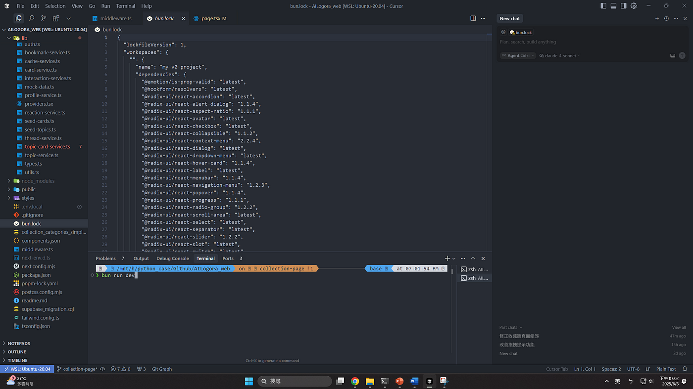 If you encounter problems while running bun run dev , directly ask Cursor for assistance. Alternatively, if you still have credits available in v0, you could publish your project there temporarily, allowing v0 to fix the bugs automatically, which typically works well for straightforward issues.
