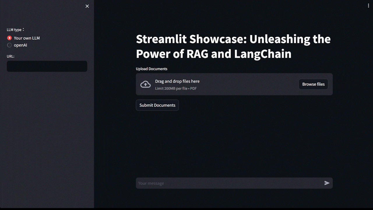 完成上述步驟後,你應該可以看到一個友善的 Streamlit 應用程式介面。在這個介面上,你可以上傳 PDF,查詢訊息,並觀察 LLM 如何從你提供的資料中擷取資訊,注意如果你要使用你自己的 LLM,記得先在另外的 process 啟動。