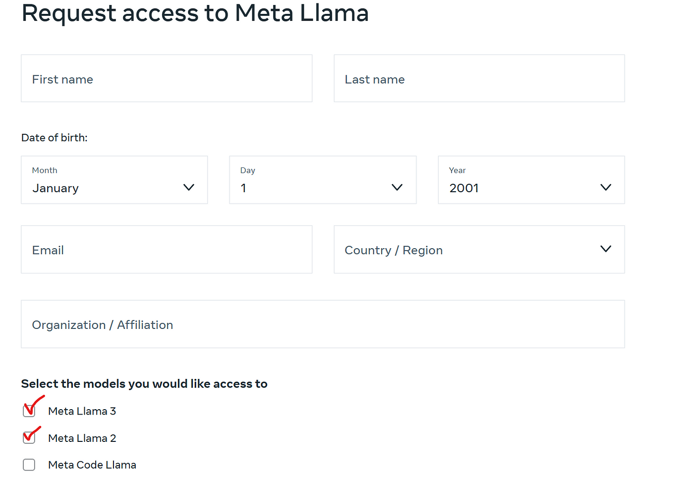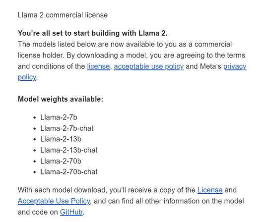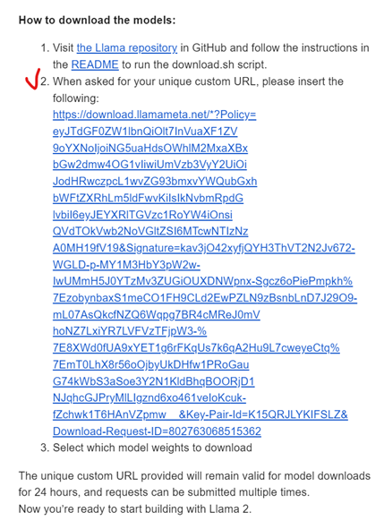 到 meta 網站 申請下載 Llama model,你可以同時申請下載 Llama 2, Llama Guard3 和 code Llama。一般會需要等 1~2 天的時間,但我最近的經驗是,申請後10分鐘內就收到了許可。