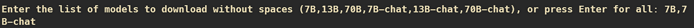 我選取 7B 與 7B-chat,輸入後便會自動下載。