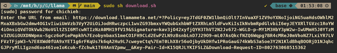 我使用 github 的方式下載,另外 meta 還有提供 huggingface 的方式下載,huggingface 提供的模型比 github 多了一種帶有 -hf 的 model,代表已轉換為 Hugging Face 檢查點。